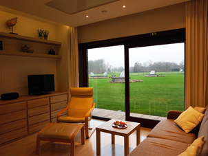 Het grote schuifraam geeft uit op een zuidgericht terras.